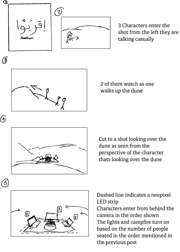 Firstly, the context of the film is that there are 3 characters which stumble upon the installation, and because of the lights hence the name Iqrabbu which means come closer. Once they approach and sit down and interact with the installation they get to know each other more, hence the second meaning of Iqrabbu. In the Emirati dialect the word Iqrabbu which not only means come closer but is an invitation to be friendly and interact with us.