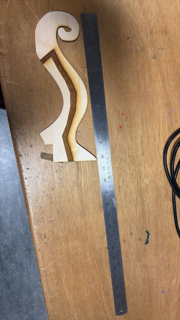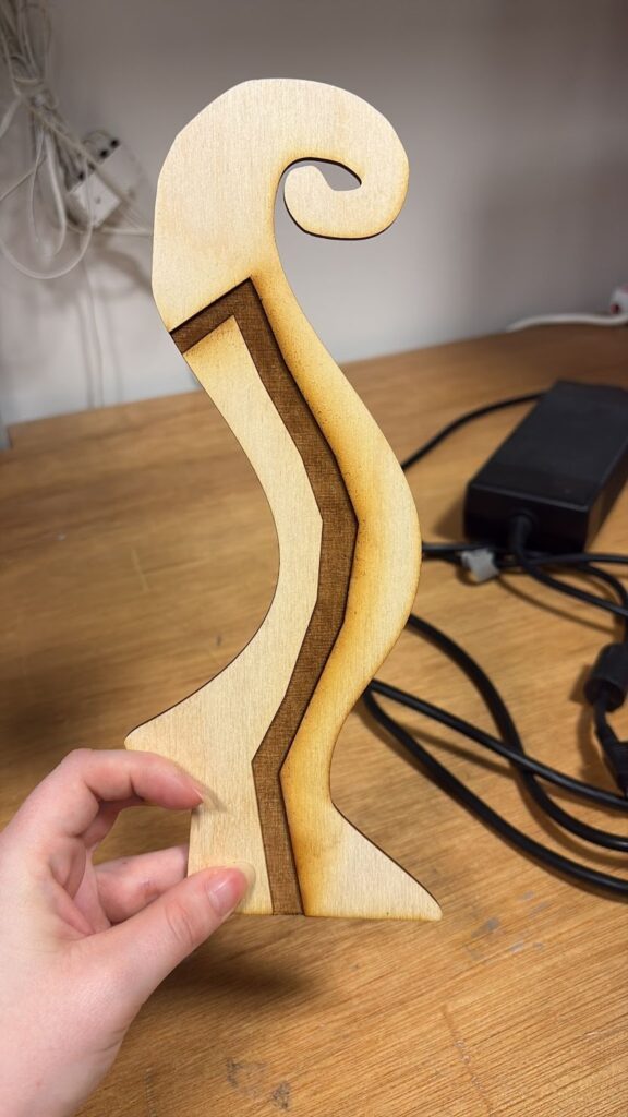 We have been designing the structure of The Lyre of Thirst and laser-cutting small prototypes to visualize how the final installation will look. These prototypes also helped us test the engraved patterns for the tubes that will pump water to the top of the piece. Our next step is to book a session to use the CNC machine to begin working on the full-scale version.